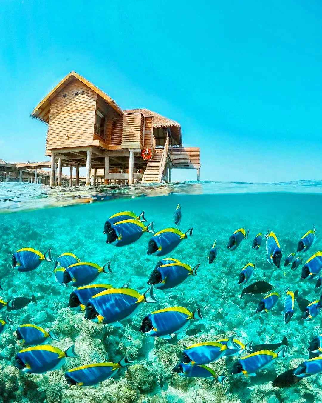 The Maldives, a place where there is one island per person, one hotel per island. Here, you can savor delicious food, enjoy a good sleep, take a swim in the sea, and gaze at the stars! It is a perfect destination for those seeking relaxation.